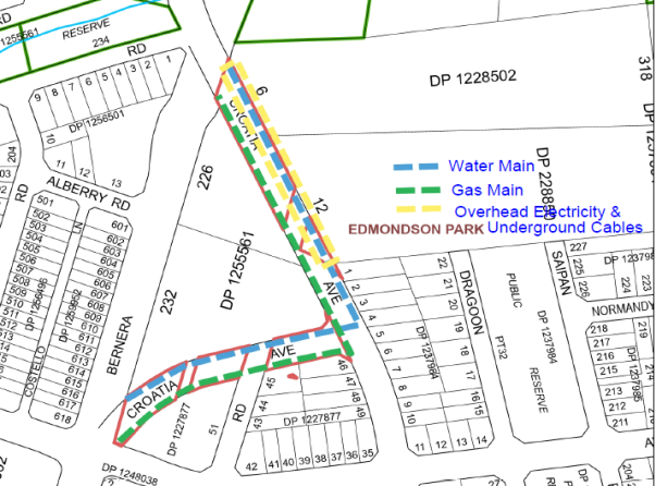 There are a number of utility assets within the subject sections of Croatia Avenue. It is therefore recommended to proceed with the closure and sale of the subject sections of Croatia Avenue, Edmondson Park as alternative public road access opportunities arise. Further reports will be submitted to Council upon successful negotiations for the closure and sale of the subject portions of Croatia Avenue, Edmondson Park.