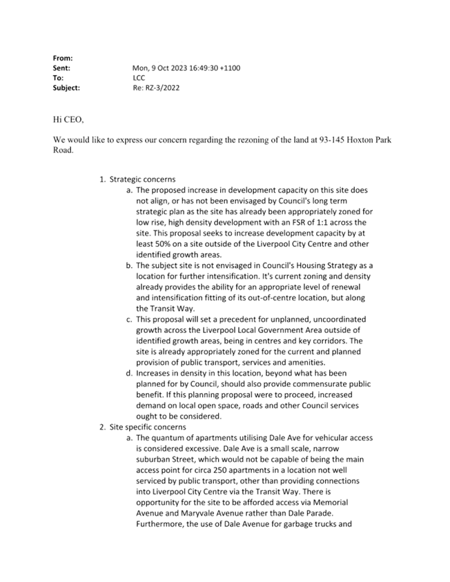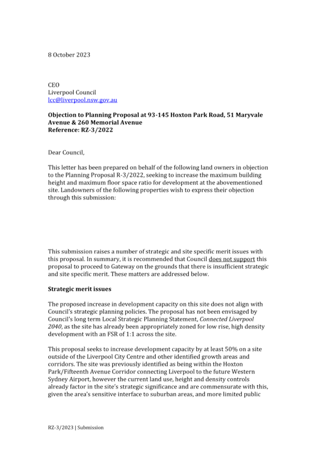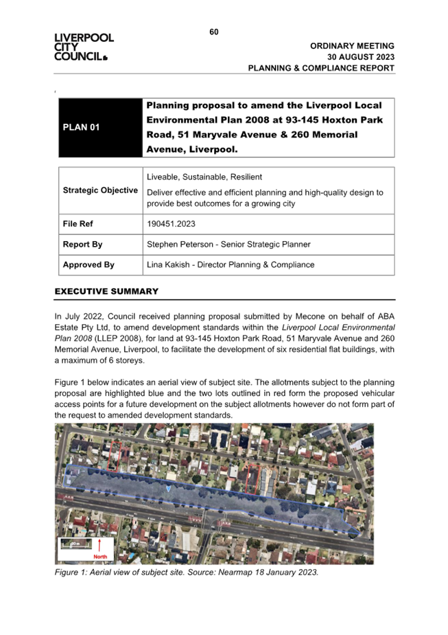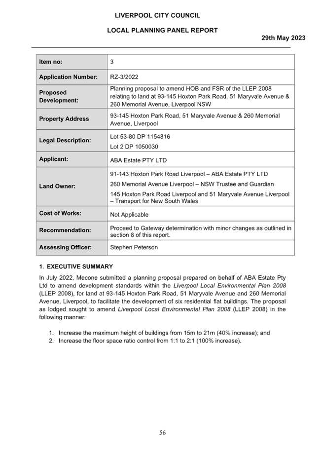 Pre Gateway Exhibition of Planning Proposal to amend the Liverpool Local Environmental Plan 2008 at 93-145 Hoxton Park Road, 51 Maryvale Avenue & 260 Memorial Avenue, Liverpool. |