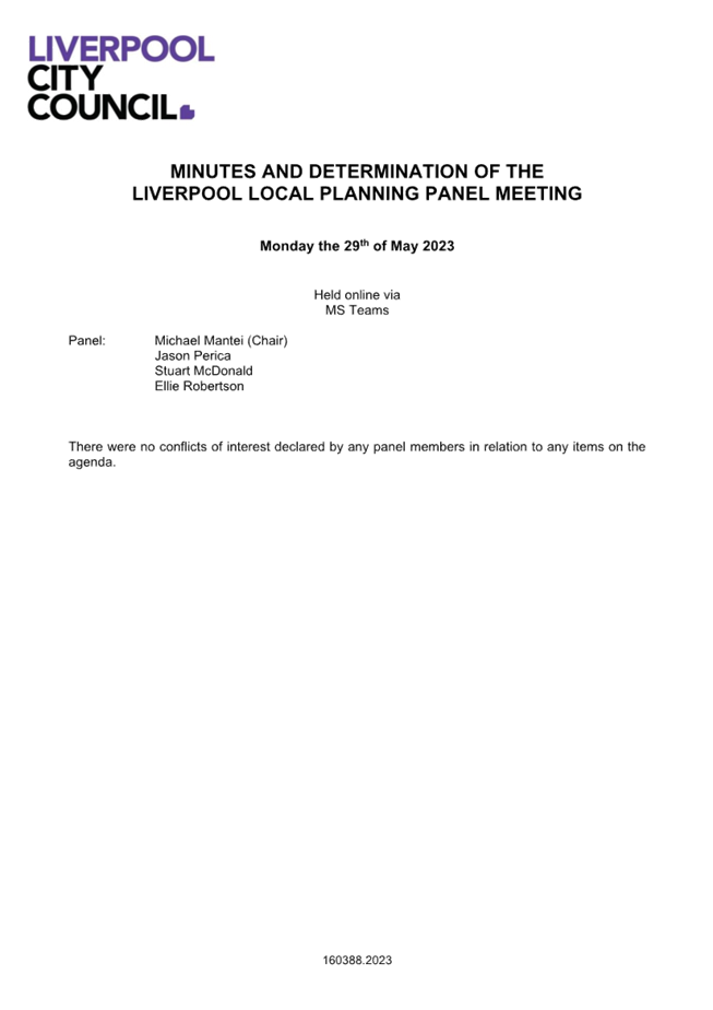 Liverpool Local Planning Panel Determination Minutes - 29th May 2023 |