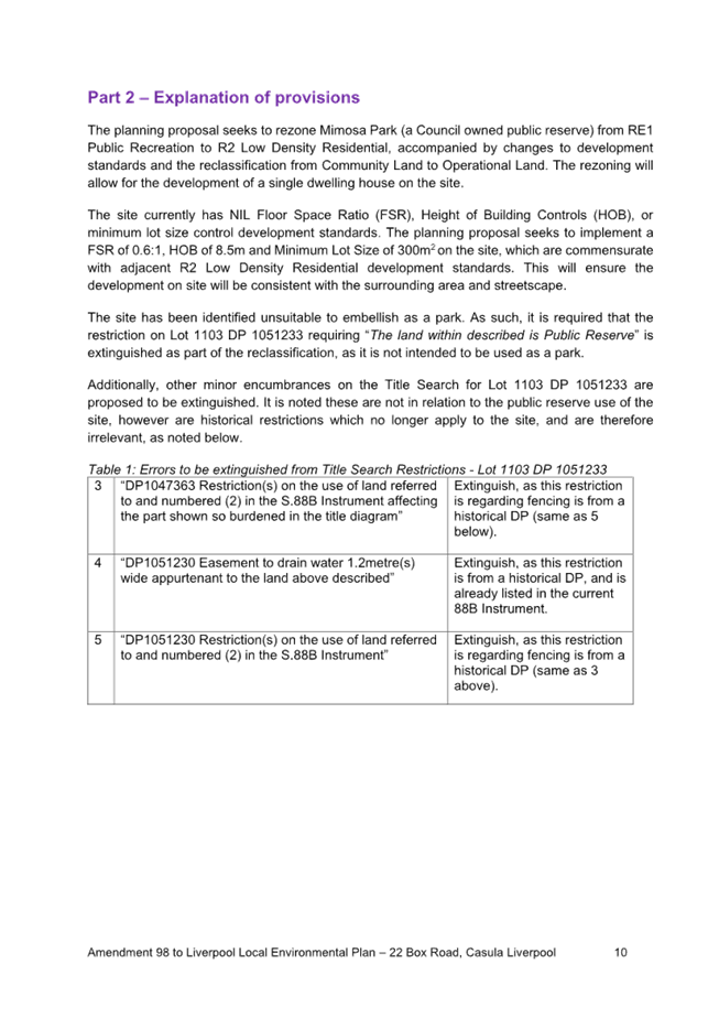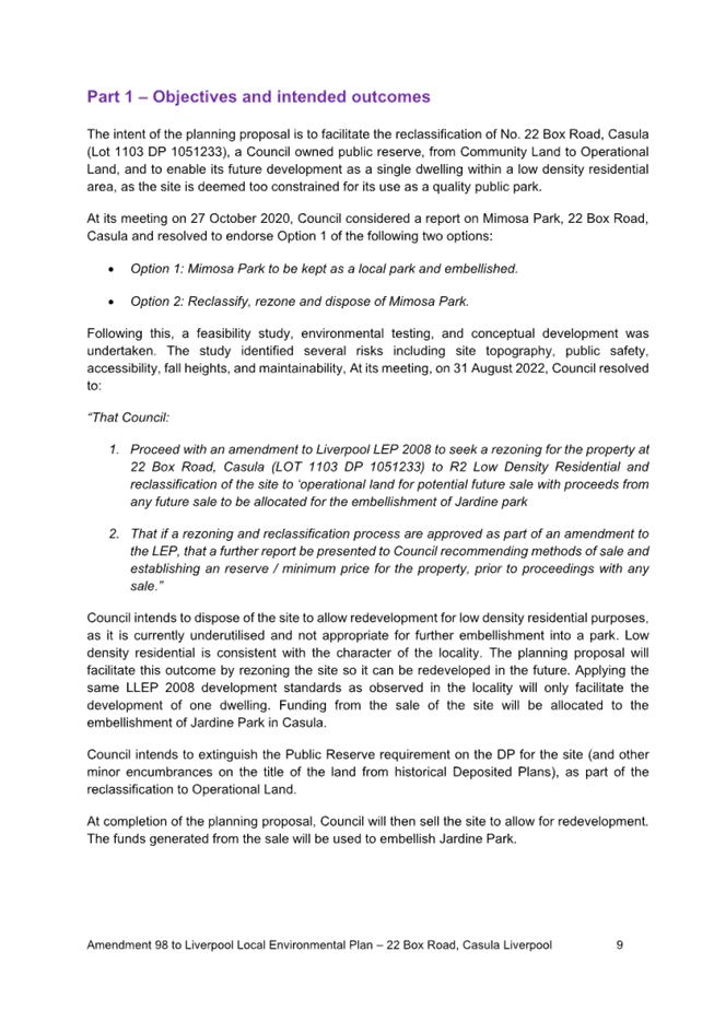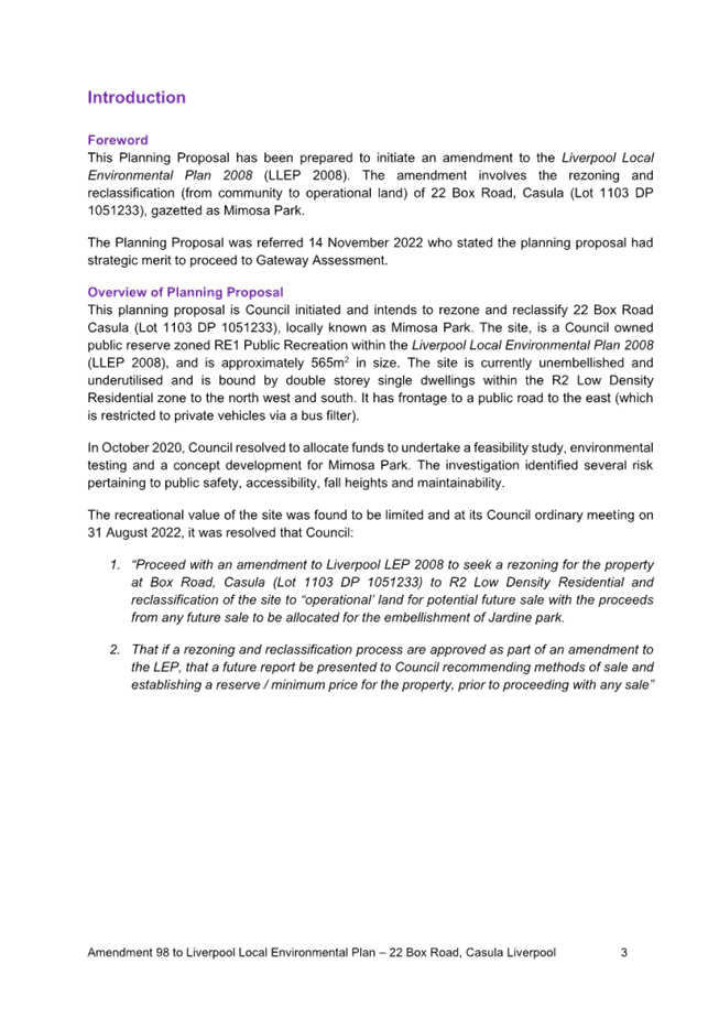 Post Exhibition Report to amend the Liverpool Local Environmental Plan: 22 Box Road (Mimosa Park) |