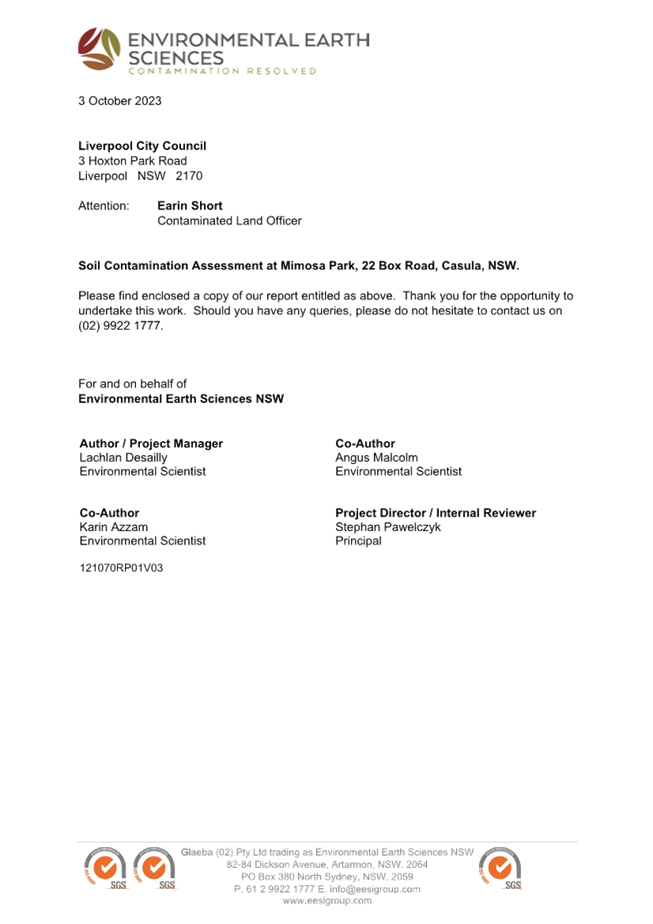 Soil Contaminated Assessment 22 Box Road (Updated October 2023) |