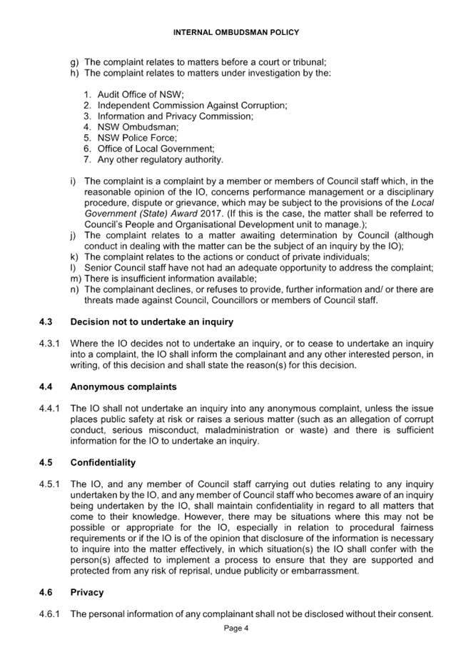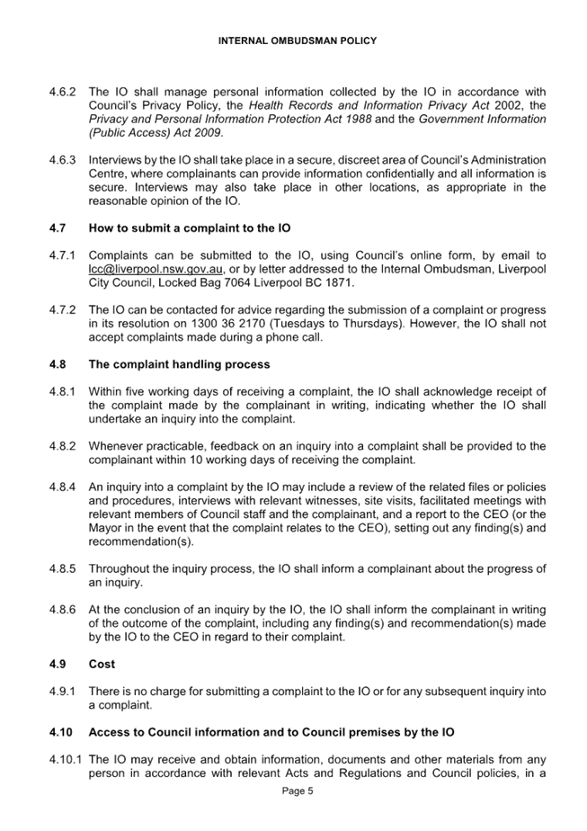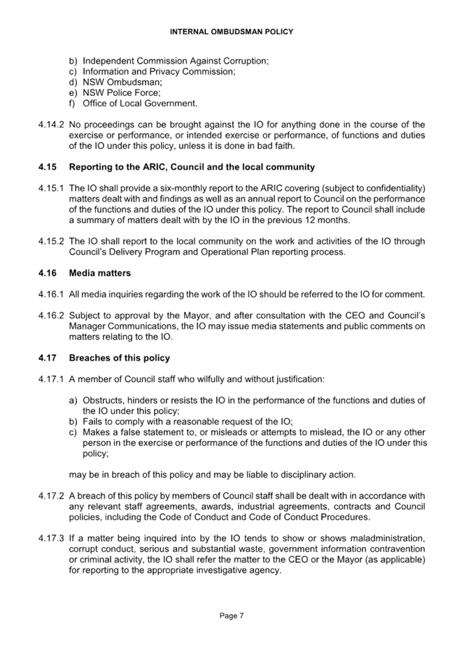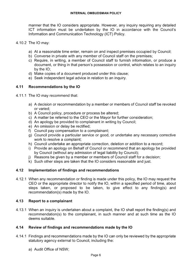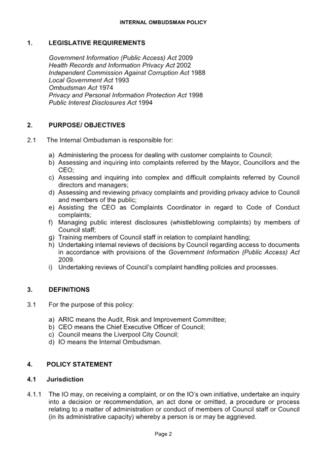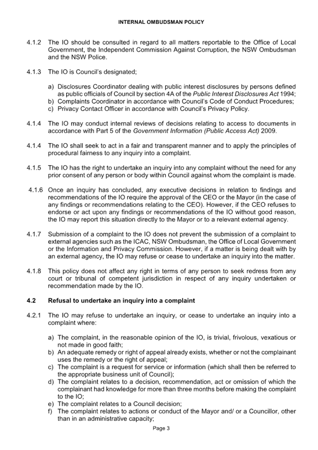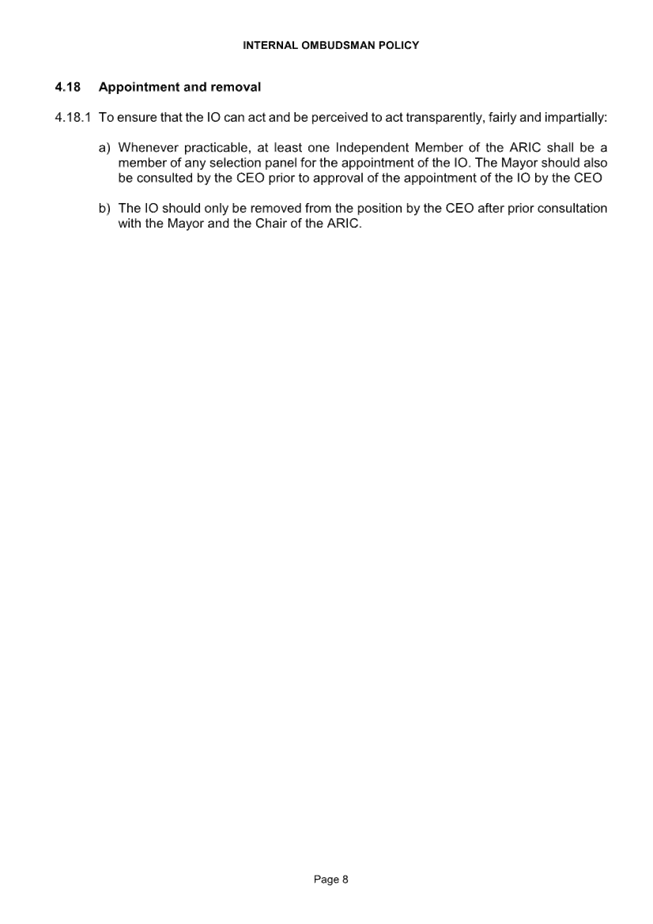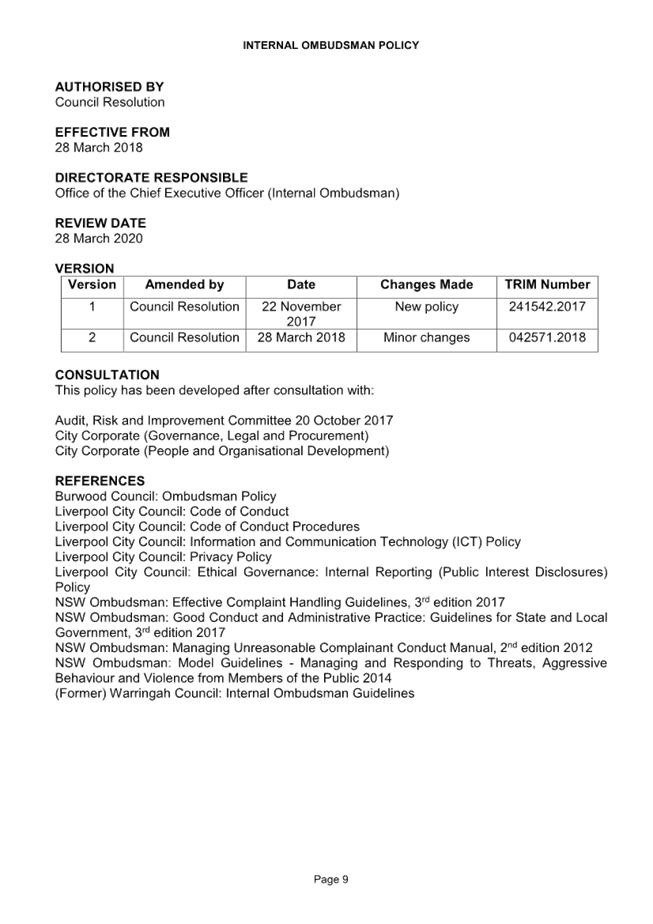 CORP 01        Revoking of Internal Ombudsman Policy..................................................... 221....... 10