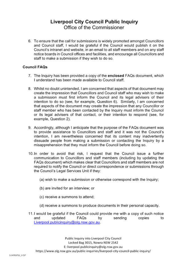 This is consistent with the Mayor’s comments in the Australian newspaper on 8 December 2023 that local government has no role in international affairs.
