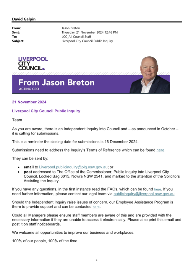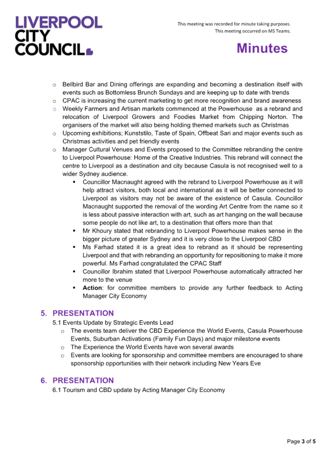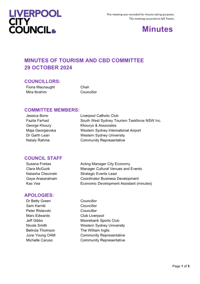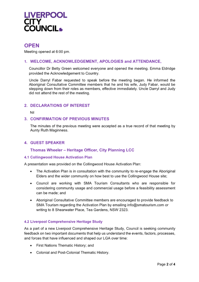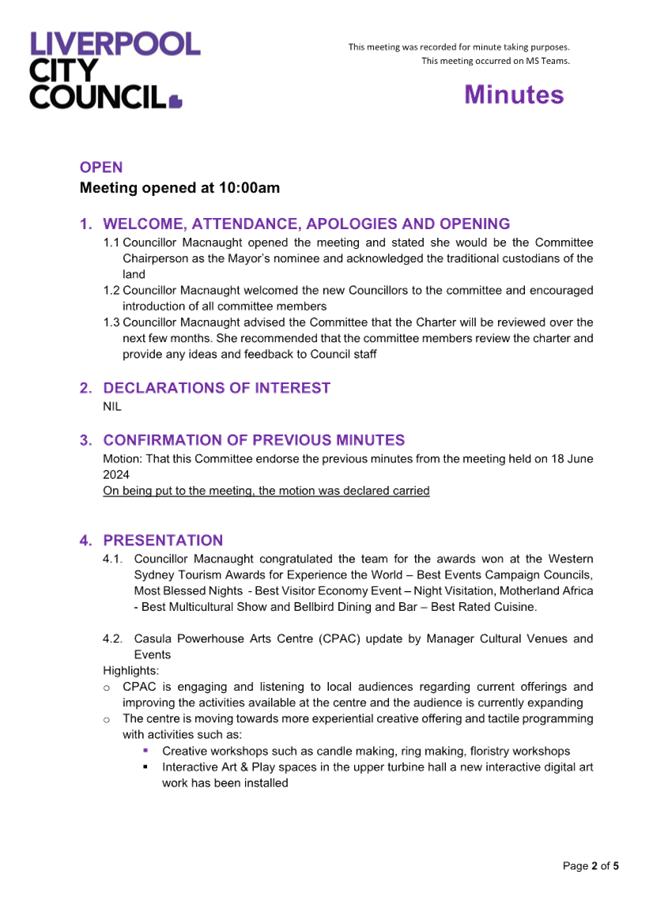 Liverpool City Council Meetings are livestreamed onto Council’s website and remain on Council’s website for a period of 12 months.  If you have any enquiries, please contact Council and Executive Services on 8711 7781.