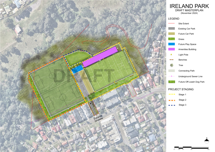 Liverpool Olympic has presented a masterplan for the redevelopment of Hoxton Park Reserve to Council Officers.  The masterplan proposes a number of embellishments that includes lighting upgrades, extensions to the amenities block to include a first floor, installation of synthetic grass playing surfaces, carparking upgrades and extensions, installation of new parking areas and recreation facilities such playgrounds, netball courts and play spaces.
