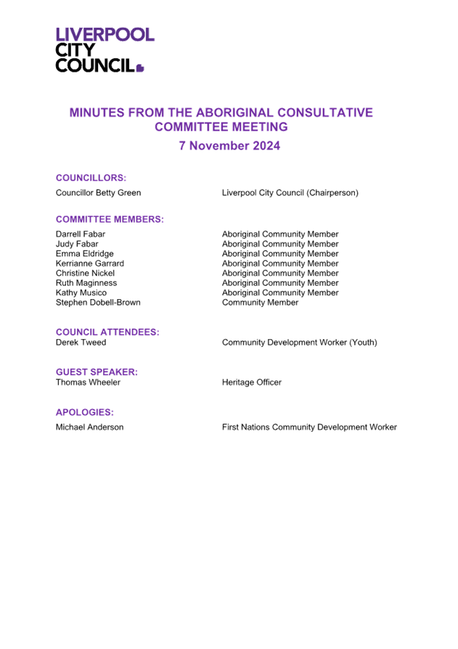 CTTE 01         Minutes of the Aboriginal Consultative Committee meeting held on 7 November 2024.............................................................................................................. 318....... 21