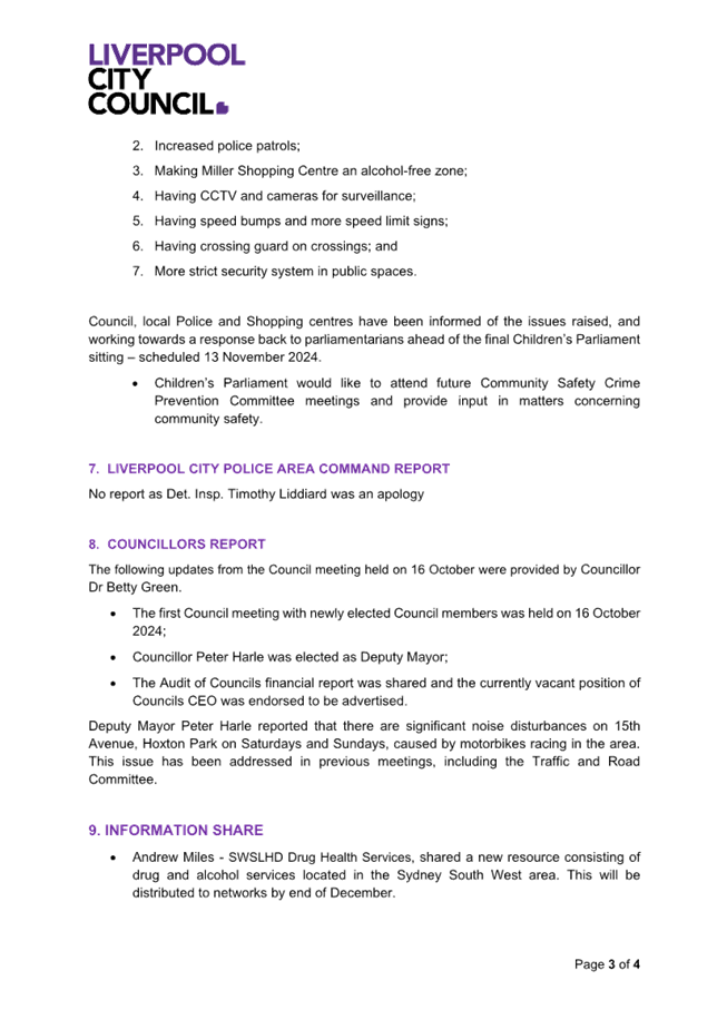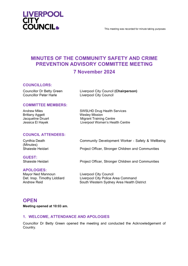 CTTE 02         Minutes of the Community Safety & Crime Prevention Advisory Committee held 7 November 2024............................................................................................ 324....... 22
