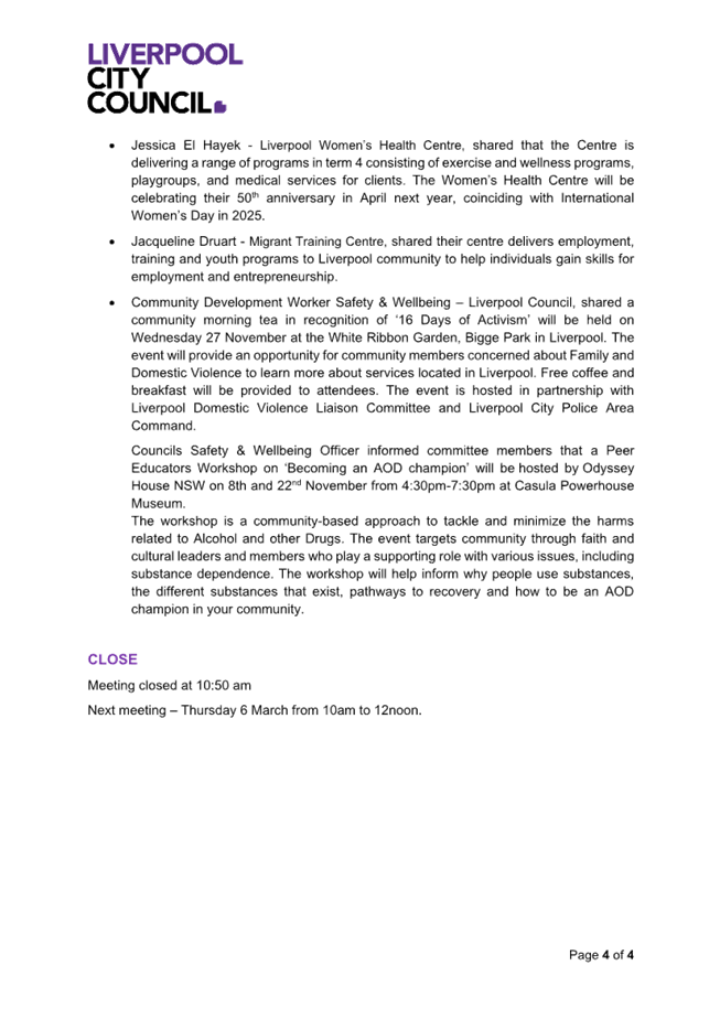 Liverpool City Council is a model of cultural diversity and inclusivity. Liverpool serves as a refuge for migrants and refugees with 43% of our population born overseas (2021 Census). Councils have a collaborative partnership with multicultural community leaders and targeted support services that are helping community members affected by conflicts around the world, particularly in the Middle East.