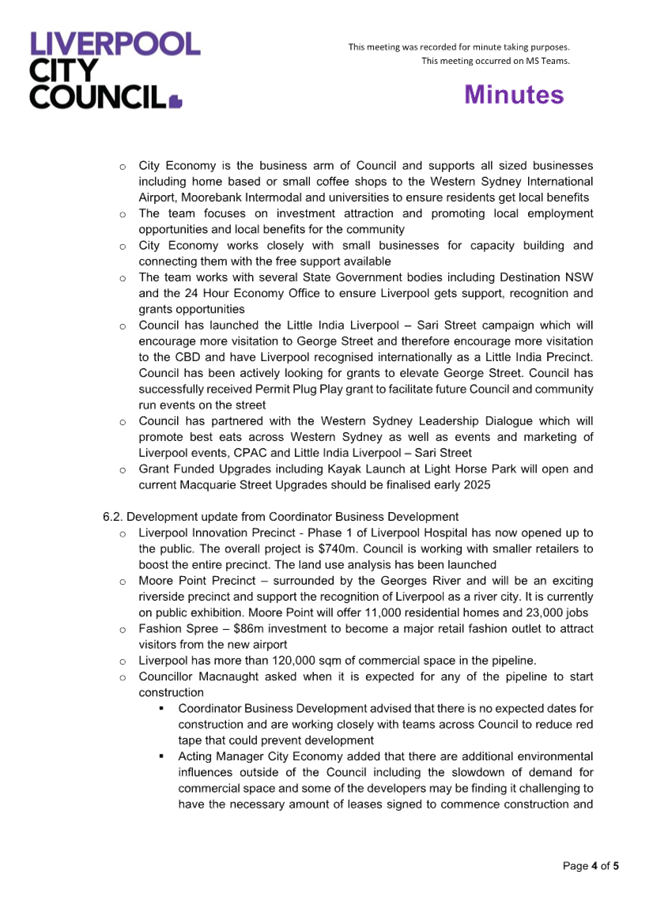 Irrespective of the outcome of the proposed masterplan, and as one of the largest and most impactful sporting clubs within the Liverpool LGA, Council is committed to working to support the Club in achieving its future vision.