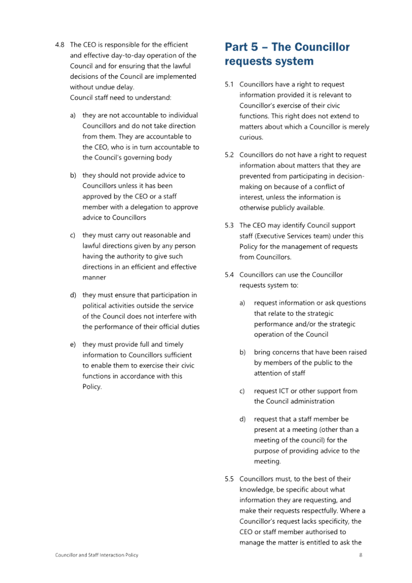 COM 04 Policy Review - Councillor and Staff Interaction Policy 113 8