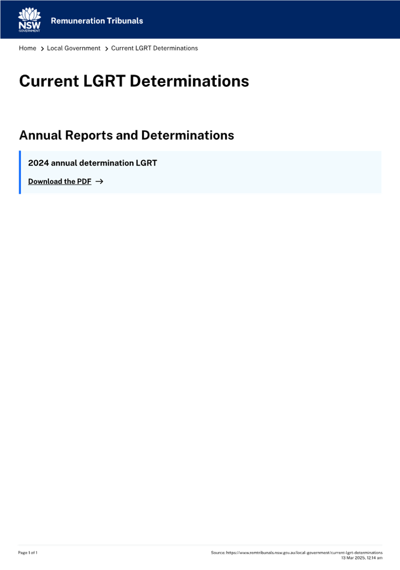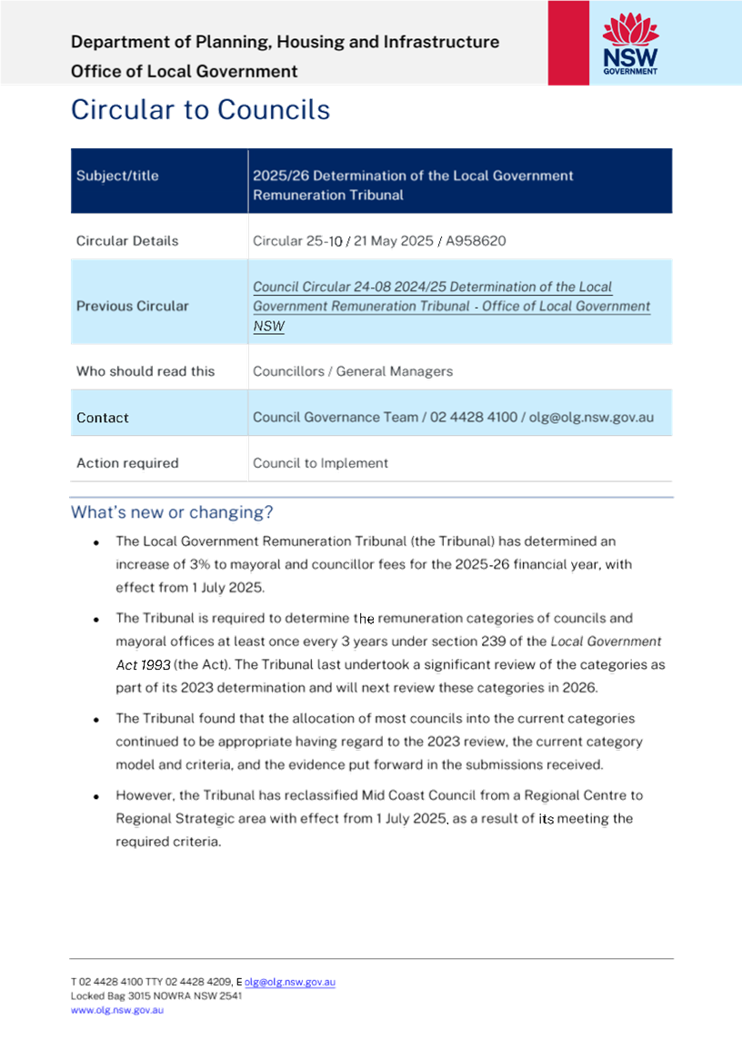 CORP 01 Local Government Remuneration Tribunal - Mayor & Councillor Fees 134 9