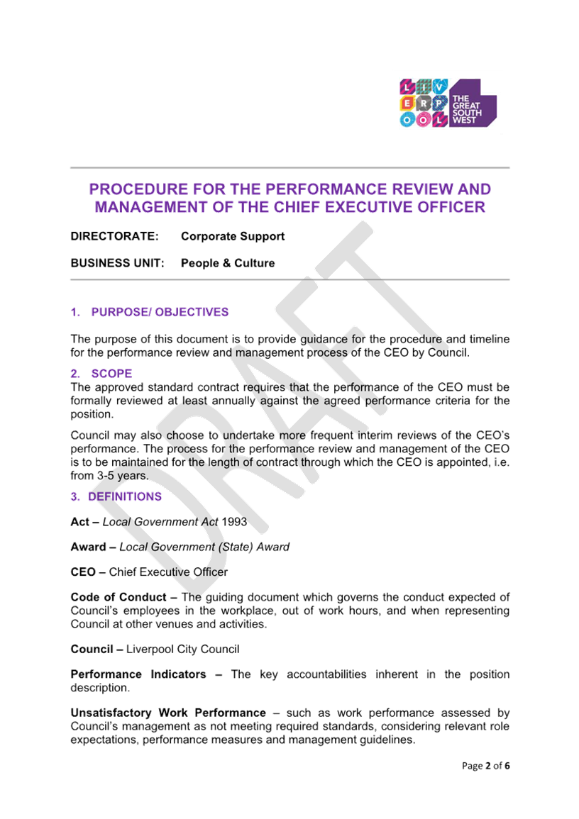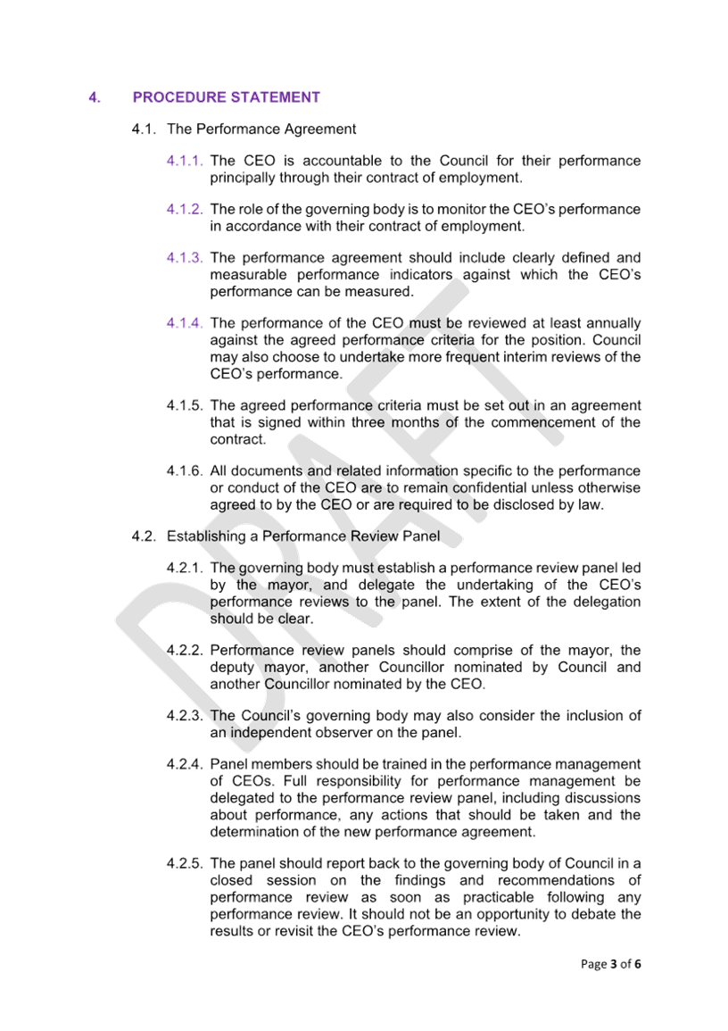 CORP 06 Confirmation of Creation of Policy and Procedures for the Recruitment, Appointment, Performance Review and Management and Separation of the Chief Executive Officer by Council 169 14