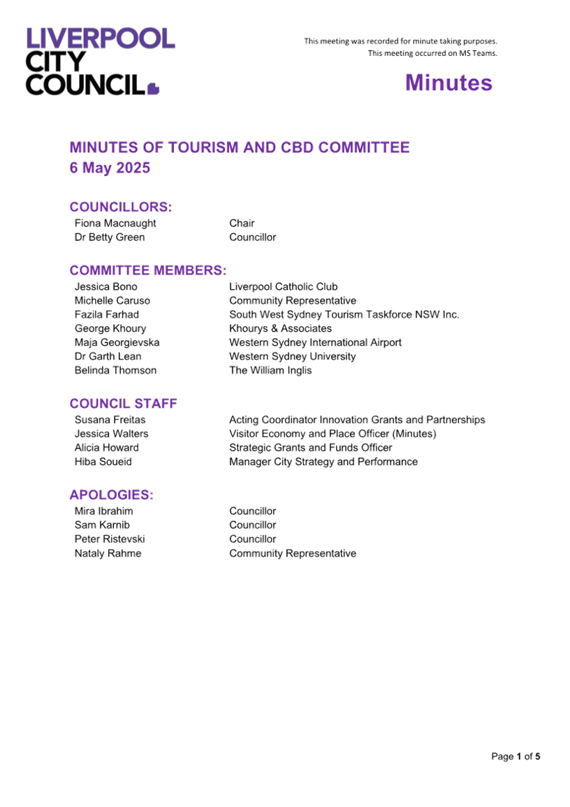 CTTE 02 Minutes of the Tourism and CBD Committee Meeting held on 6 May 2025 214 19